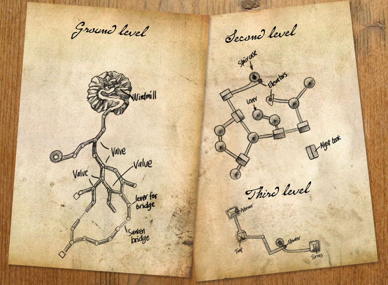 Not much of a map, but these are the drawings from the book of the pathways in channelwood.