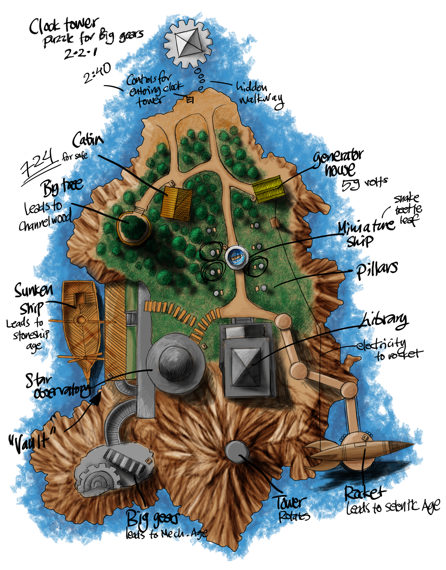 I have found this empty book in the library and have decided to keep notes in it of my experiences in this world. I say “world” since I am no longer in my own world. I found a book lying at the foot of an old volcano I was visiting in the desert. It was a strange book that seemed to be in perfect shape in spite of having lied there for a very long time as it was buried in the sandy ground. The book had “Myst” written with large letters on it, and curious as I am I opened it to find an image on the first page, an image that moved, to show a beautiful Island in the seas... I was so enchanted by this and somehow I was transported to this Island... I can’t explain how and why, but somehow the book has taken me here.