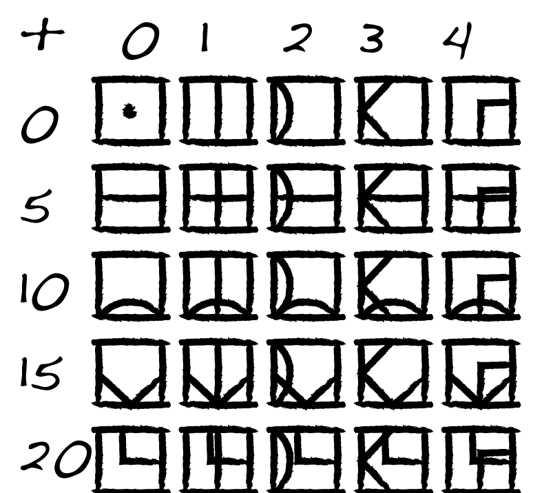I feel that I have also made a breakthrough in understanding the numbering conventions. Gehn helpfully noted in his journal the D’ni’s fascination with the number 5. It seems to have been carried into Riven. The numbers are based on five. The number 10 is the second five (i.e. the number two tilted on its side), meaning 15 is the third five, 20 is the fourth five, etc.