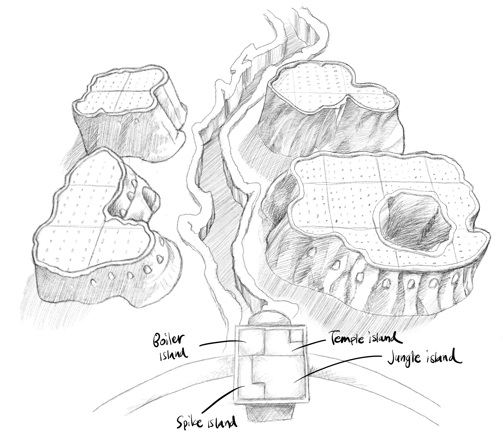 Both the topographical maps and the rocks below show a grid pattern associated with each island, and I should make a map with this as well. It must be important since each dome seems to be located in one grid on each island. The purpose of this seems to be to keep track of the islands and their shapes perhaps?