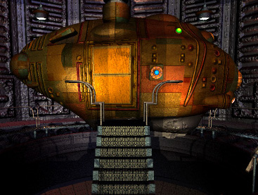 Ok, after running around trying to find out as much as possible while there is still power, I have finally found a way to have the power on at all time. In the pathways down to the brothers rooms there was a hidden door, that led to a small room with a big compass-like plate with buttons on its edge. Pressing a button turned off the power. I assumed that I had to press the right button, so I had to find out which one that was. After walking around I realized that the only thing I could see in the telescope was the little house with the generator in. And the telescope is graded in a 360 degree circle and the generator house is at 135 degrees. After sitting down and trying to calculate where 135 degrees would be, I pressed the button and now power is on again. With power on, I could walk down to the end of the ship, where there was a linking book back to Myst. Bringing the two pages I’ve found in this age, I linked back...