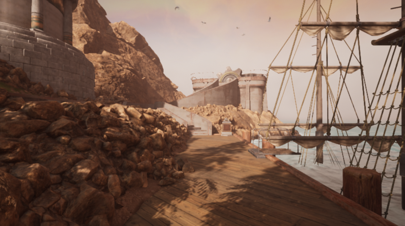 In the docks there is a sunken ship just like in the middle of the island in a small pedestal.