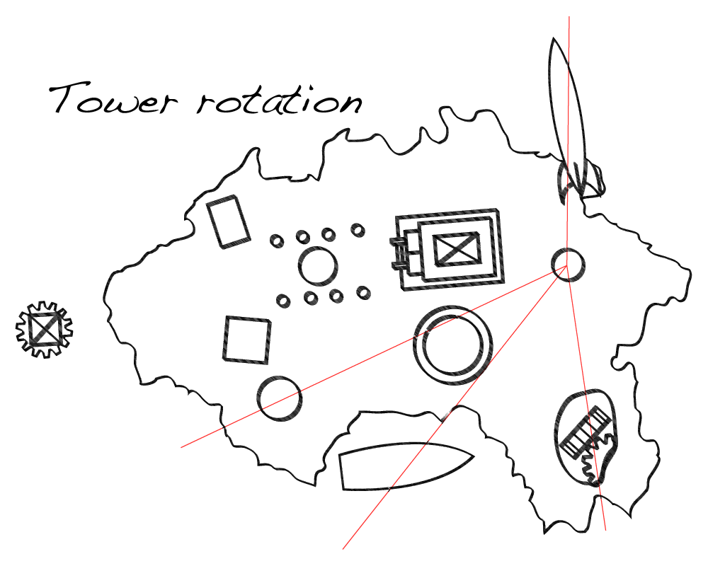 Aha!! When touching the painting the tower actually rotates according to the red line and locks on to the Marker Switches on the map! This way, information is revealed in the tower: