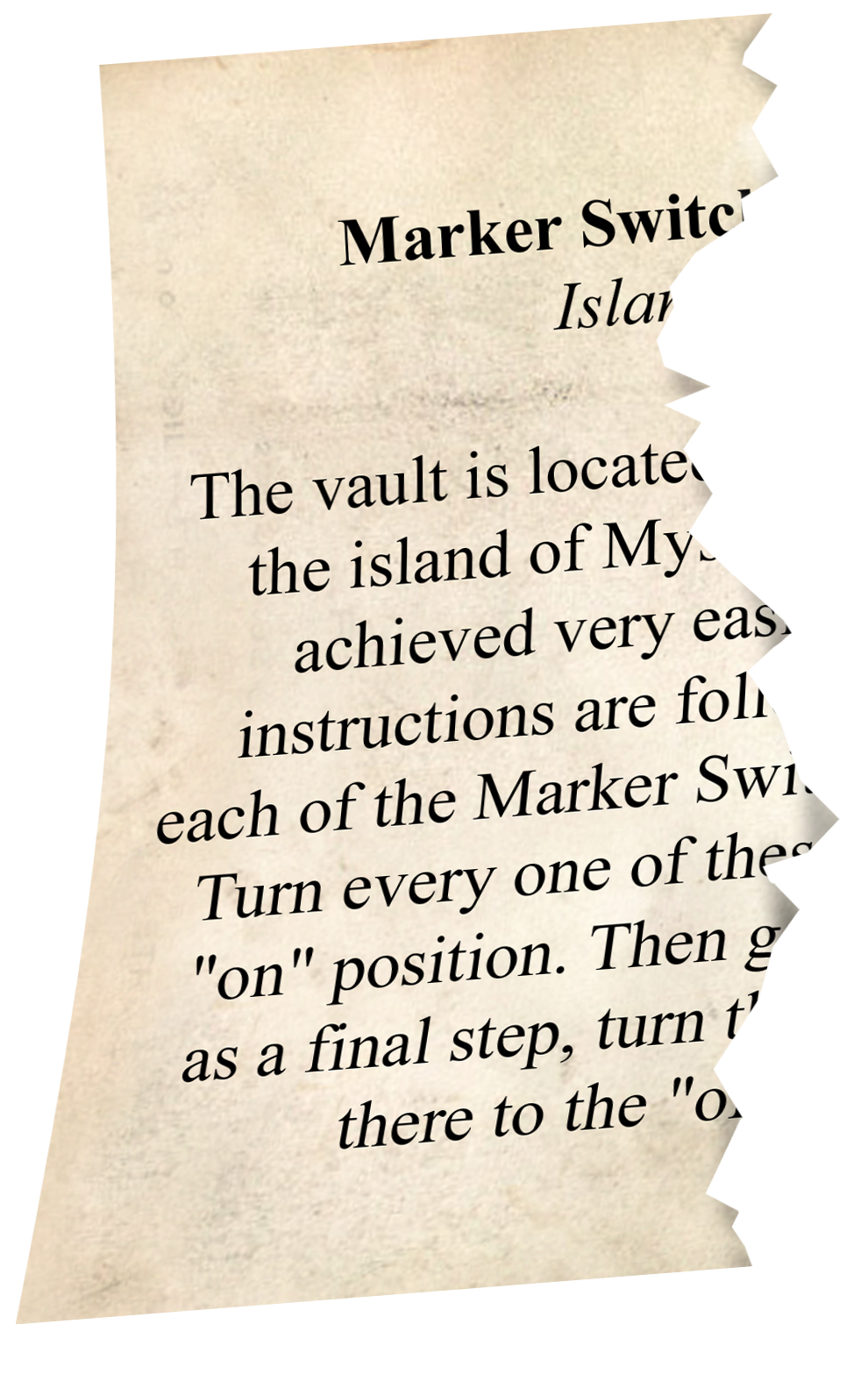 Marker Switch Vault Access, Island of Myst