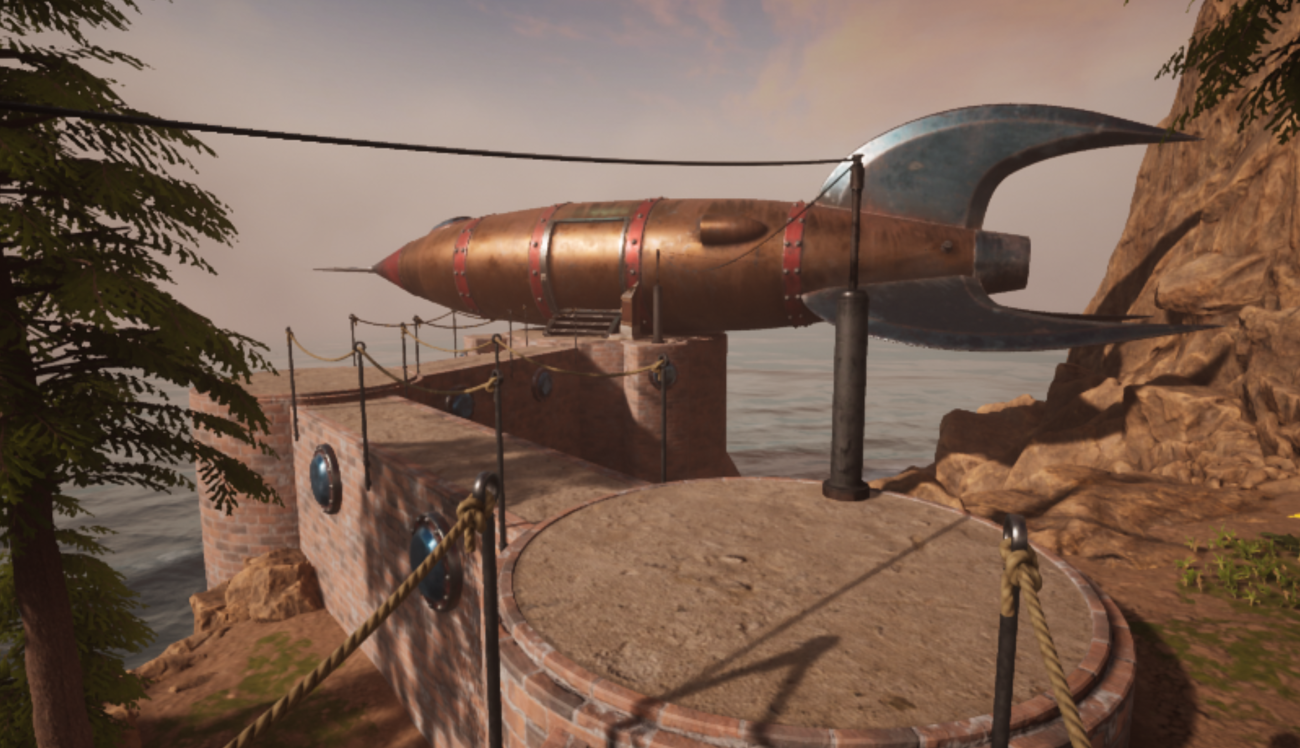 Behind the Library is a huge brass Rocket that can’t be entered. It’s beautiful. I’m a bit anxious that this might be the only way away from this island, since the ship in the docks can’t be used.