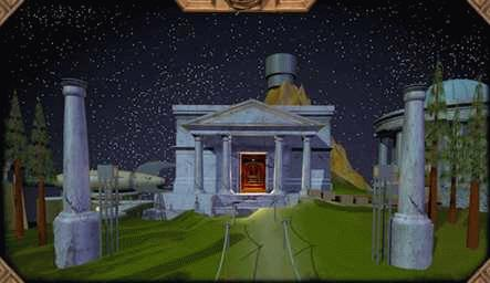 A curious Age indeed. Vast seas as far as the eye can see. In the center is a huge rotating house. Or at least it looks as if it could rotate since it rests on large circular tracks. I’ve searched the house and found the brothers rooms and even two secret areas with more pages for their books and a note from Achenar to Sirrus that Sirrus’ greed sickens him. It is obvious that there is some real tension between the two. At the place I was linked to was a panel where a code could be punched in. I assume I have to find the code somewhere, presumably on the other islands the house can rotate to. There is a “fortress rotation simulator” inside, but nothing happens when using it.
