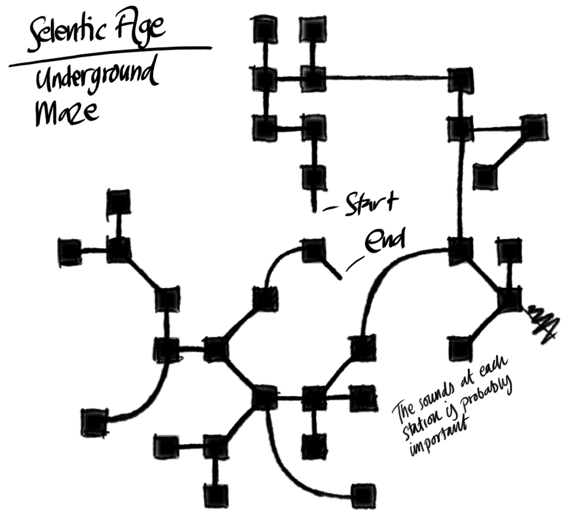 With the sounds in the right order, I could finally open the door by the rocket (after some trial and error). It led down a passage to this beautiful vessel in bronze and gold. It was truly amazing! Inside it was a chair and some controls. Forward, backward, left and right. I hesitated a second but then I pressed the forward button. The “train”, it turned out, is running on tracks in what can only be described as an underground maze. I instantly got lost and spent what felt like hours tracking back and forth in the maze. I felt panic creeping up but when I found myself back where I started I decided to start from the beginning and map the entire maze to help me out. Looking at the map, it seems I never actually travelled very far, so I’m assuming that this was a puzzle, not a means of transportation to get anywhere else than the end station (which, according to my map, seems to be really close to the beginning). There I found a linking book that took me back to Myst Island.