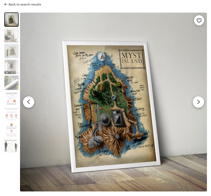 Cyan is pretty restrictive about making money off their IP, and I've contacted them with regards to being able to sell physical versions of my Myst Book, but they haven't responded yet. Also, I reported the listing on Etsy. :/